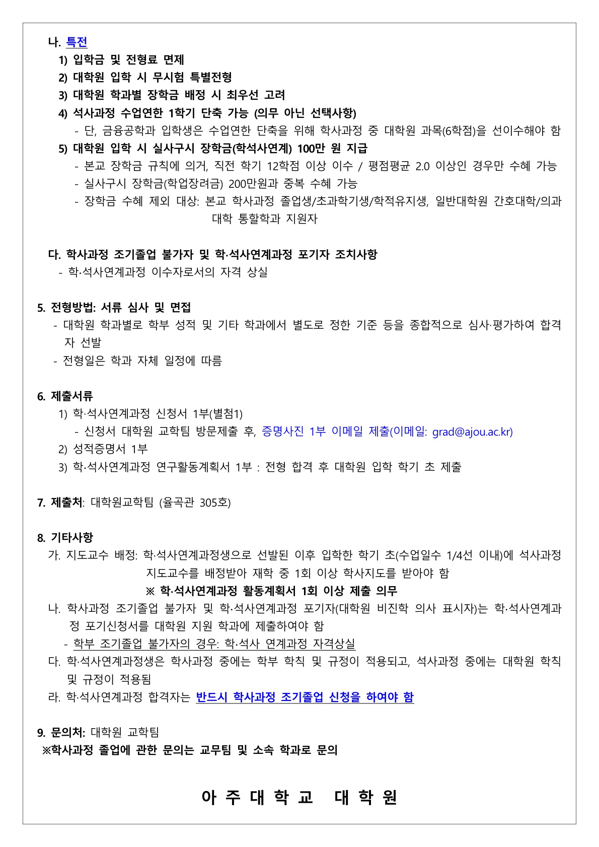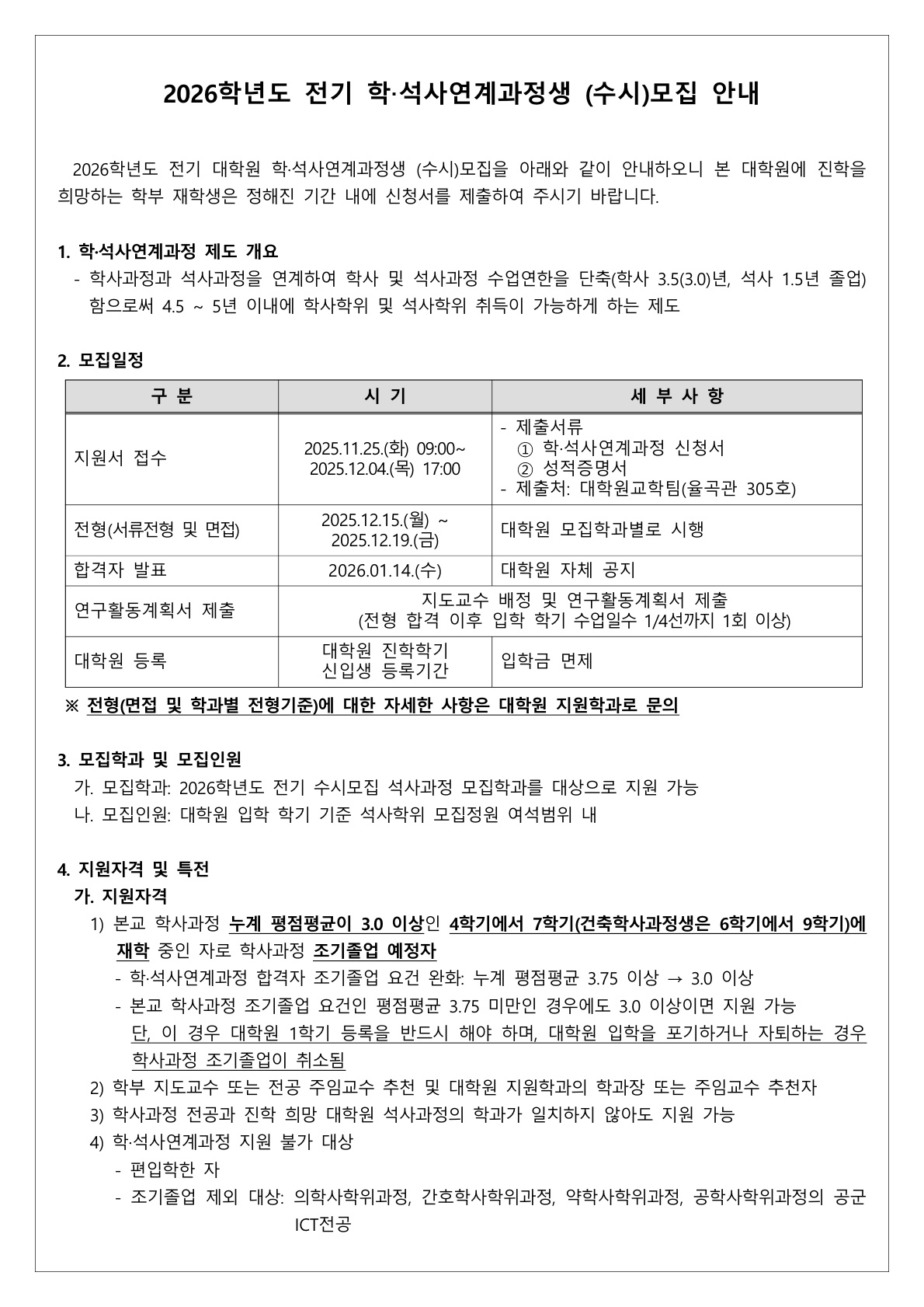 [입학] 2026학년도 전기 학·석사 연계과정생 (수시)모집 전형 실시 안내