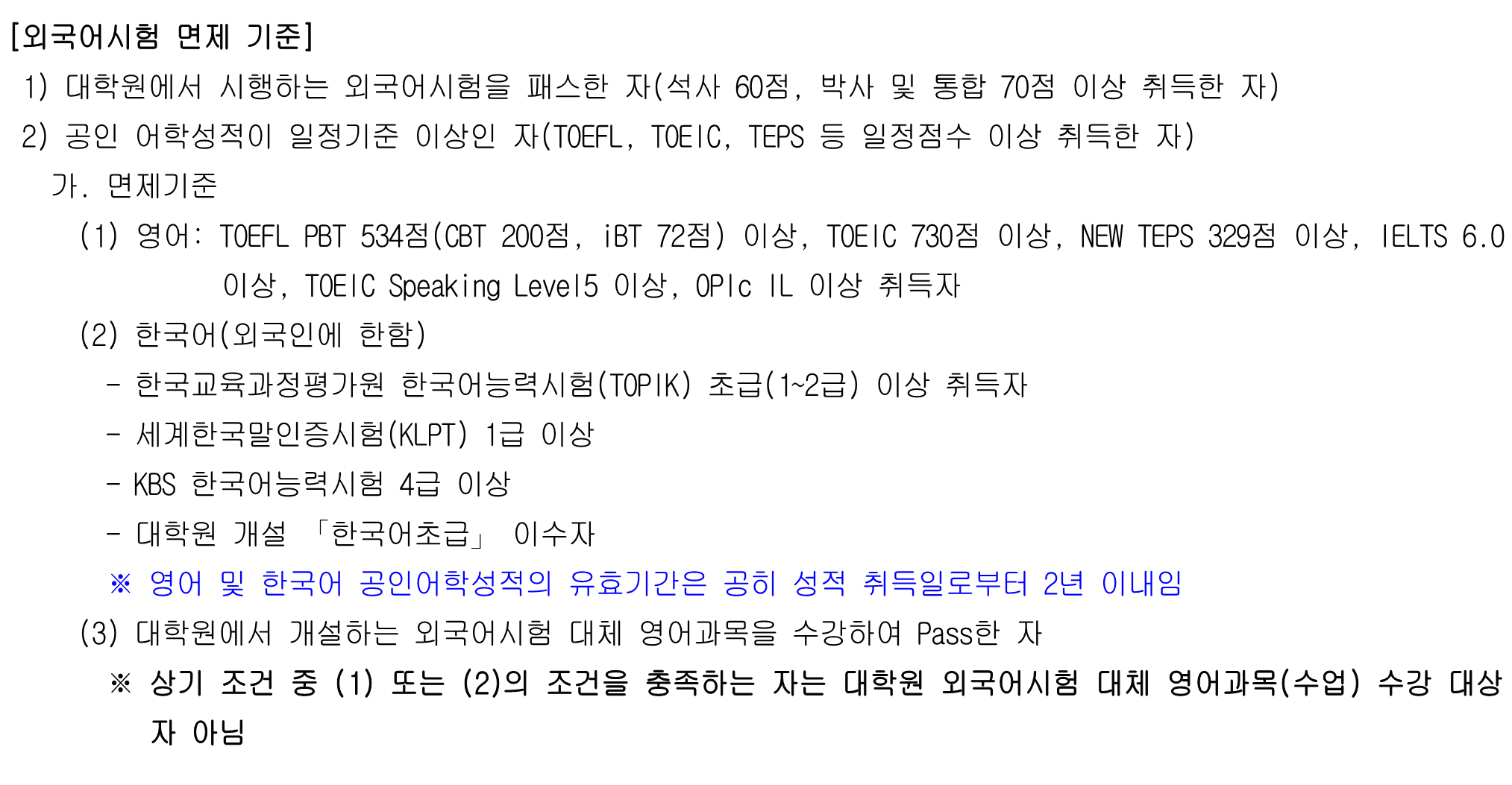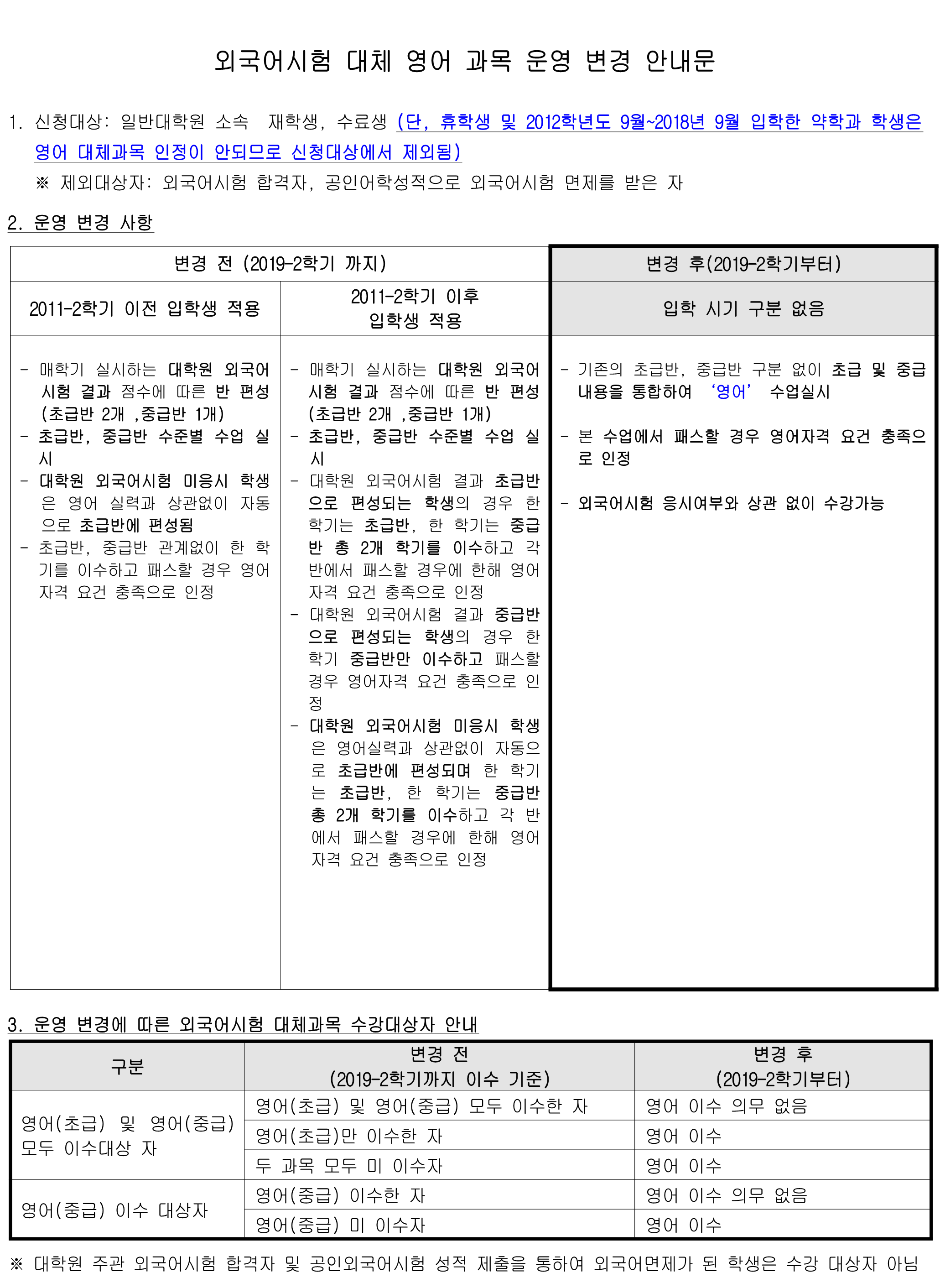 2026-1학기 외국어시험 대체 영어 과목 수강신청 안내