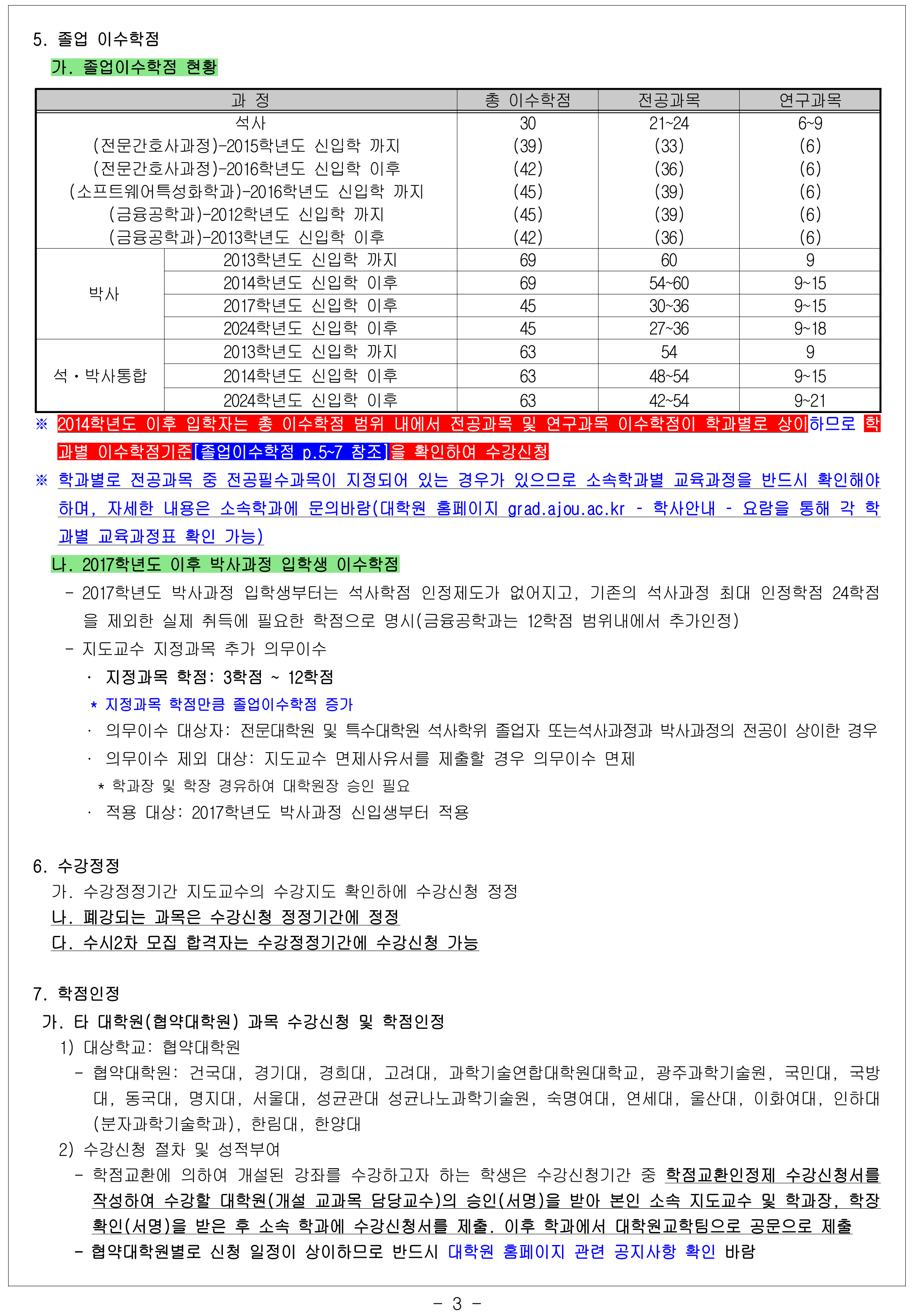 ※ 전공과정 및 학과별 이수학점은 첨부문서를 참고하세요.