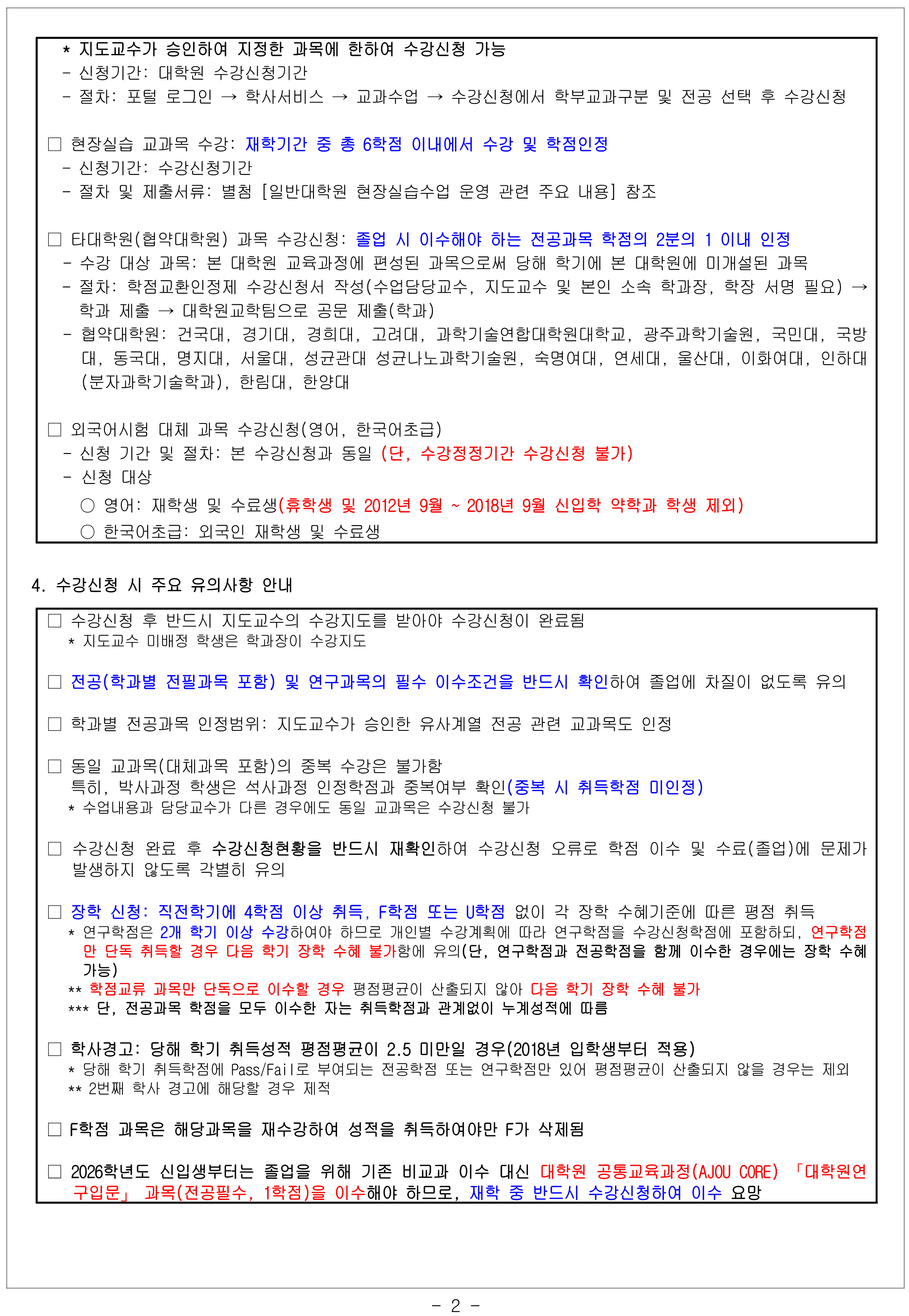 [학사] 2026학년도 1학기 일반대학원 수강신청 안내
