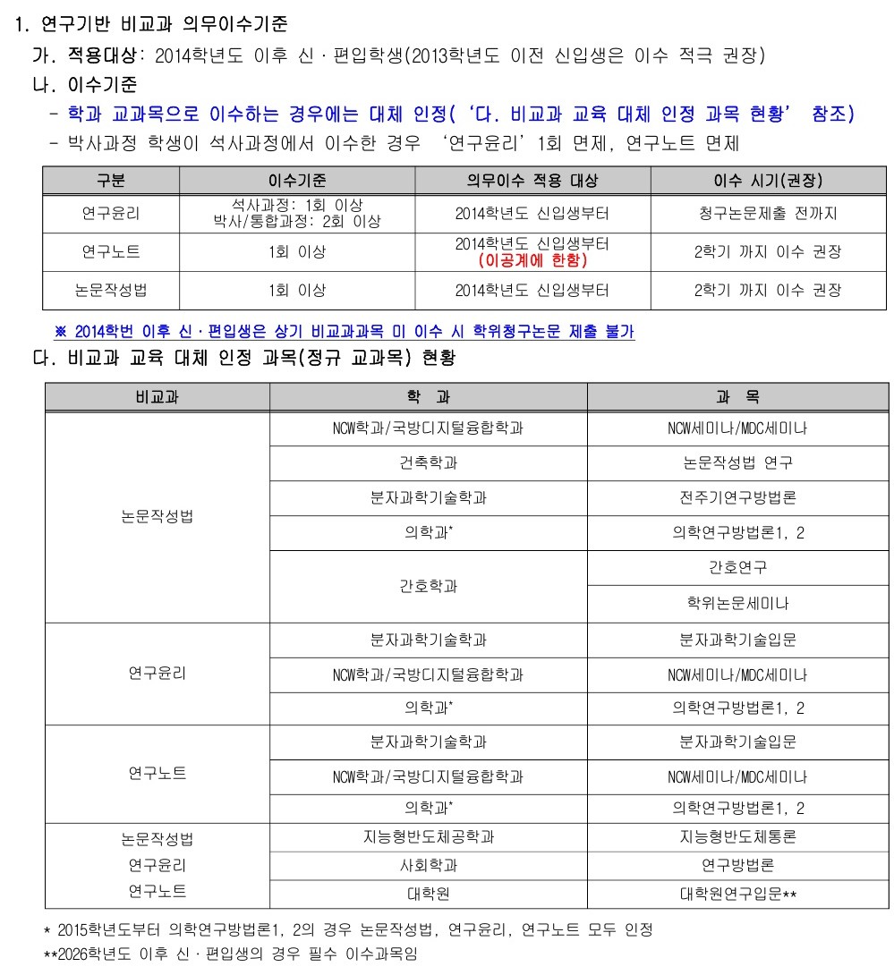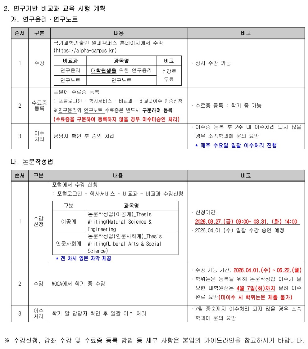 2026-1학기 비교과과목 의무이수기준 및 교육이수 안내